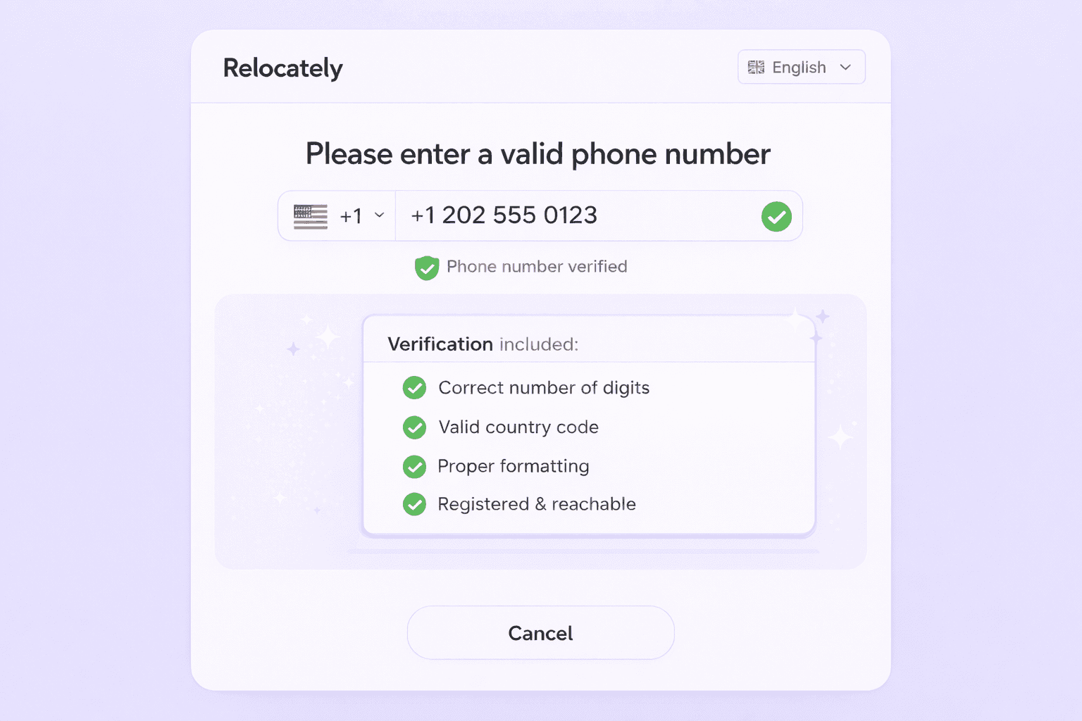 To further enhance lead quality and improve our partners’ experience, Relocately has implemented a more advanced phone number validation system.