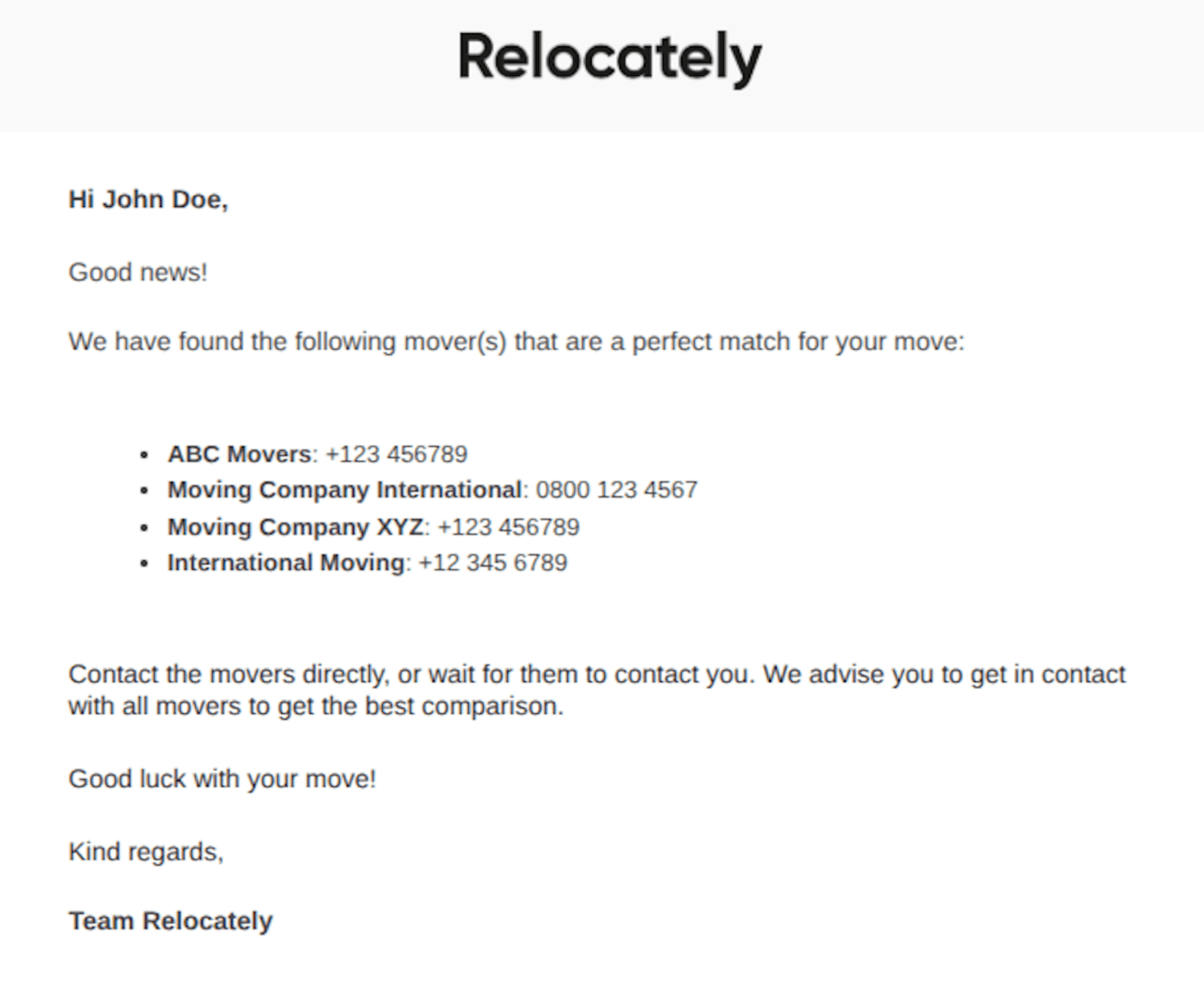 To better manage and elevate customer expectations, Relocately has redesigned its transactional email communication. Below is an example of an improved confirmation email that clearly sets expectations regarding next steps, timelines, and what the customer can expect from the moving company.