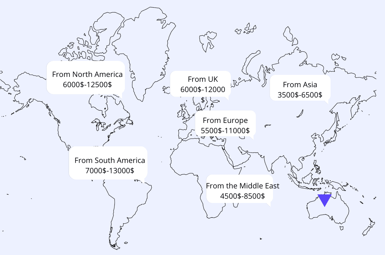 From within Asia: €3,500 – €6,500