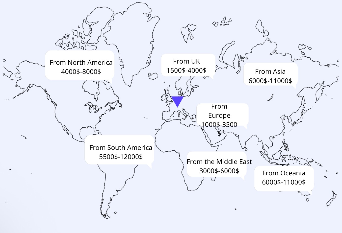 From North America (USA/Canada): €4,000 – €8,000