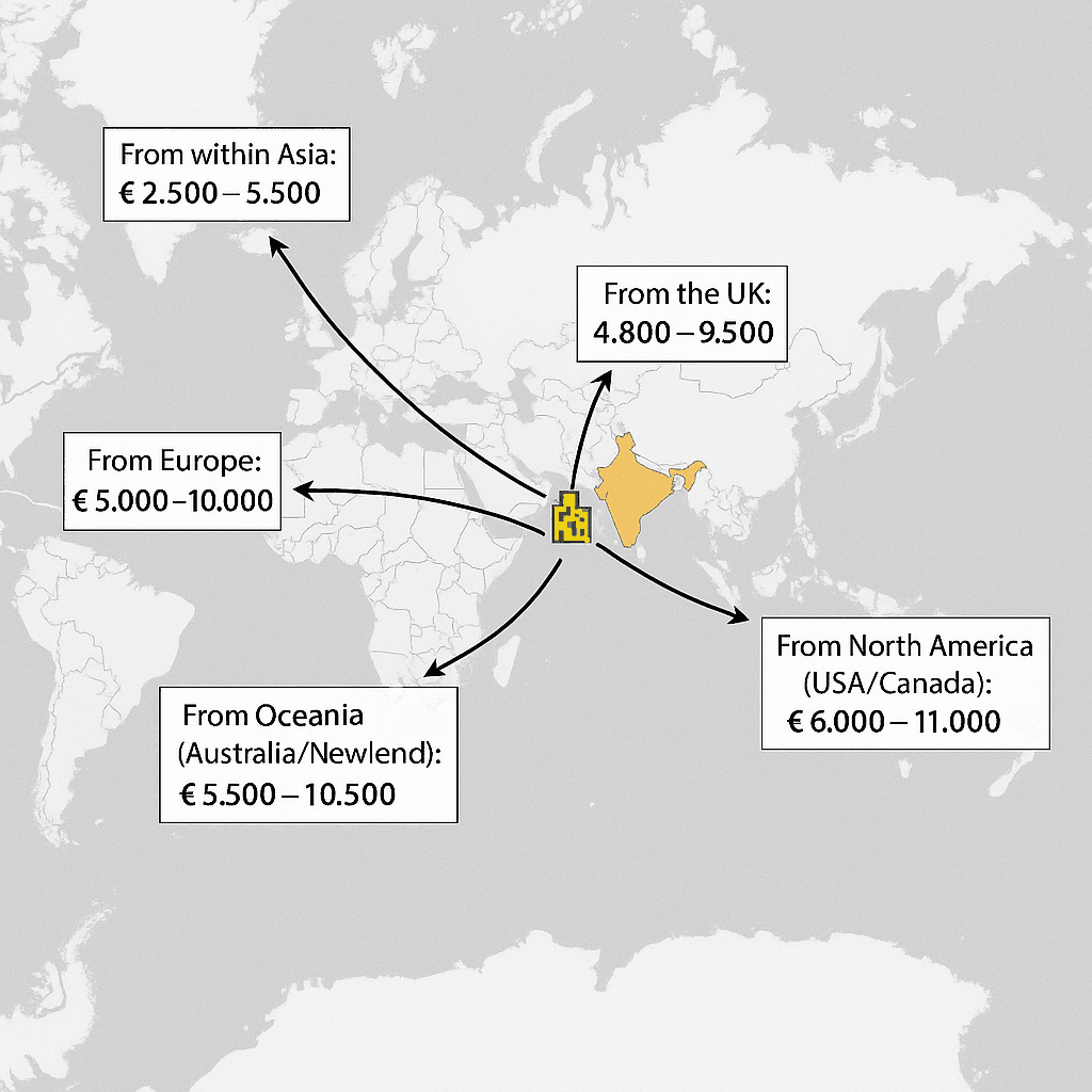 From Oceania (Australia/New Zealand): €5,500 – €10,500