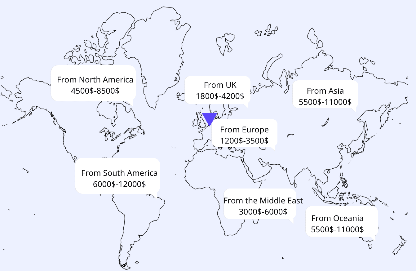 From North America (USA/Canada): €4,500 – €8,500