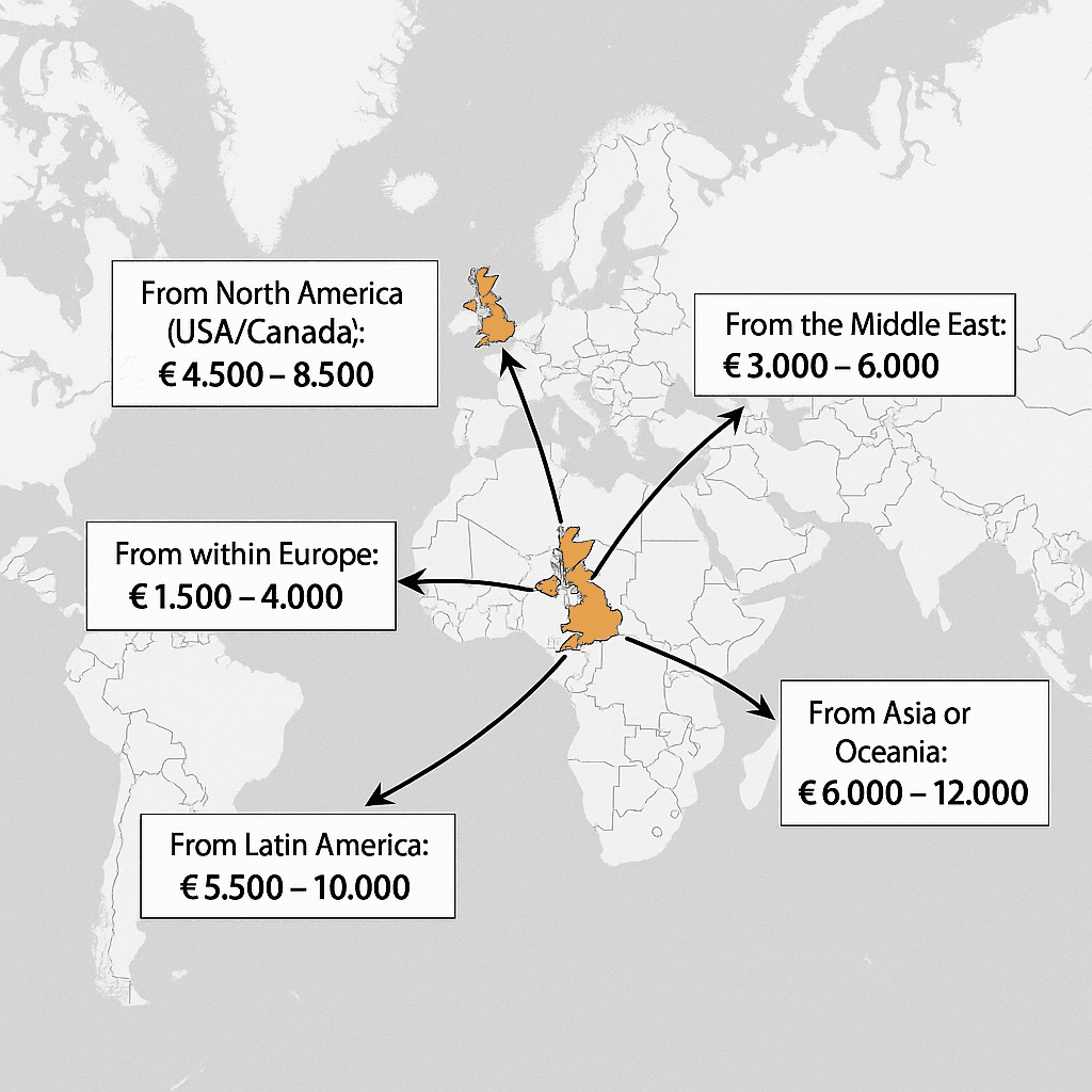 From North America (USA/Canada): €4,500 – €8,500