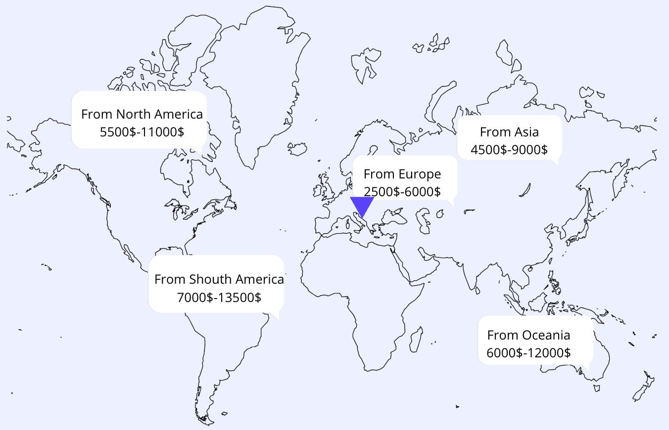 From Oceania (Australia/New Zealand): €6,000 – €12,000