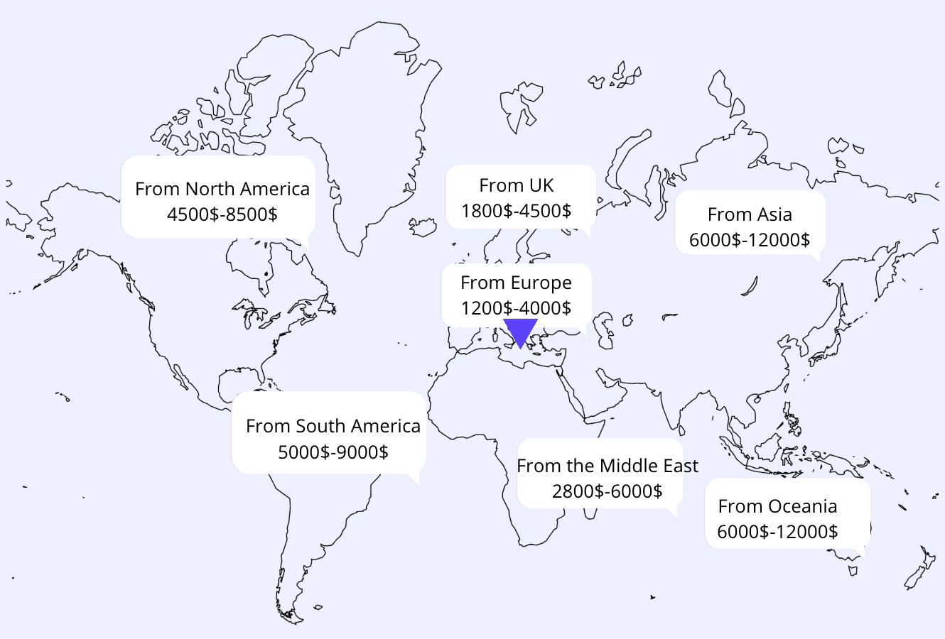 Costs depend on the volume of goods, whether you choose shared container (groupage) or full container shipping, and additional services like packing, storage, insurance, customs handling, or vehicle/pet relocation.