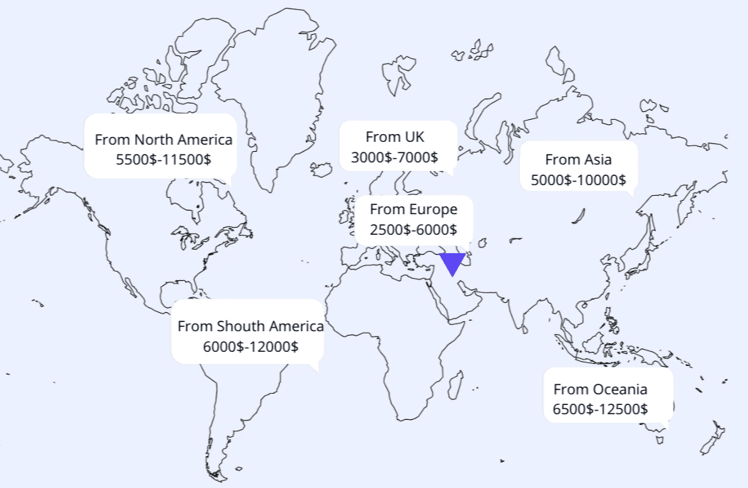 From Oceania (Australia/New Zealand): €6,500 – €12,500